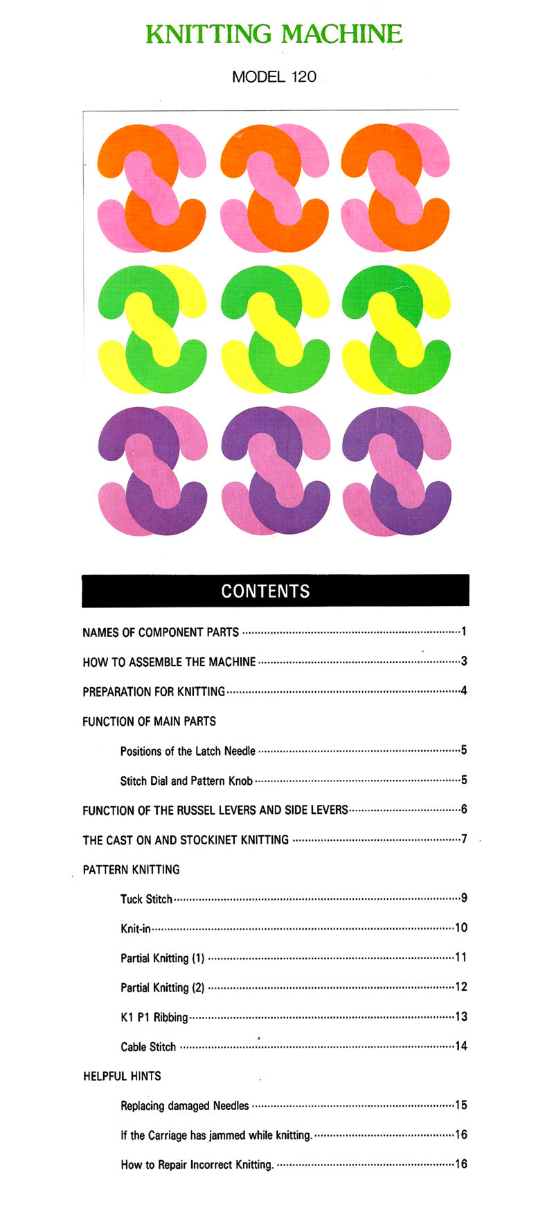 888505 INSTRUCTION BOOK for SINGER SK120 KNITTING MACHINE