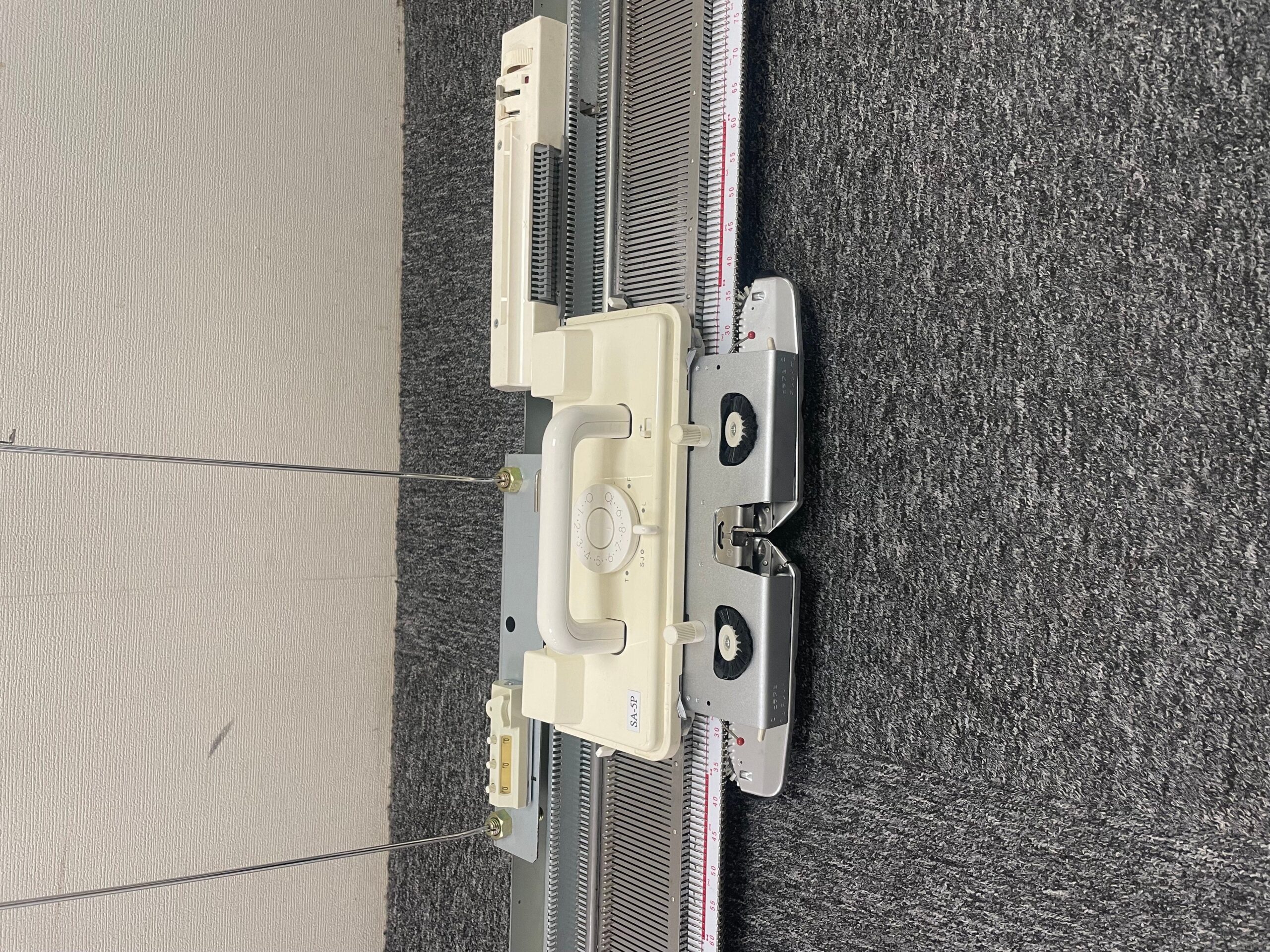 This SA-5P is a 5.6 gauge (4.5mm) needles knitting machine.