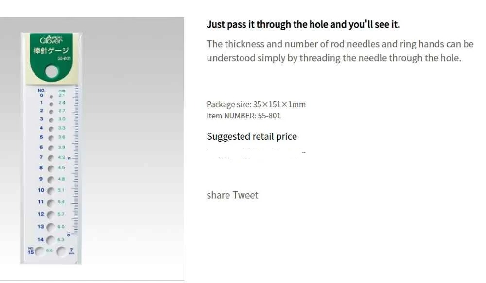 Measure your crochet hook or knitting needle size in US, metric and Japanese standard sizes.